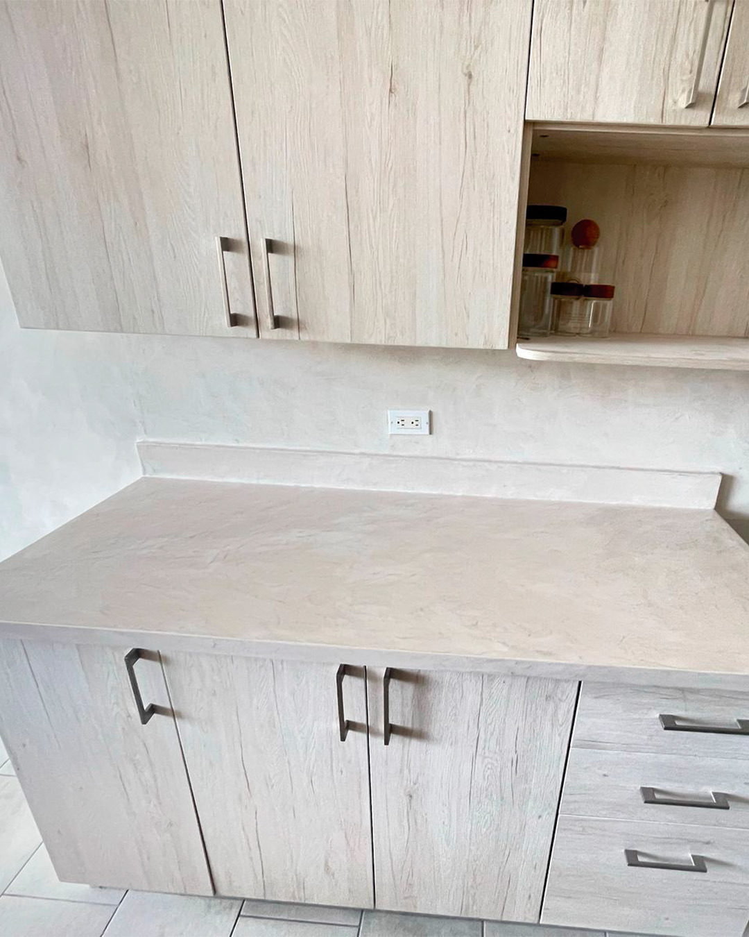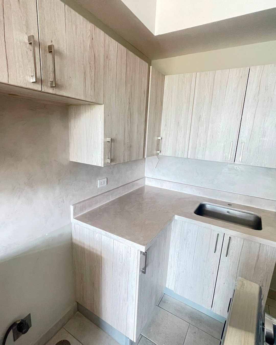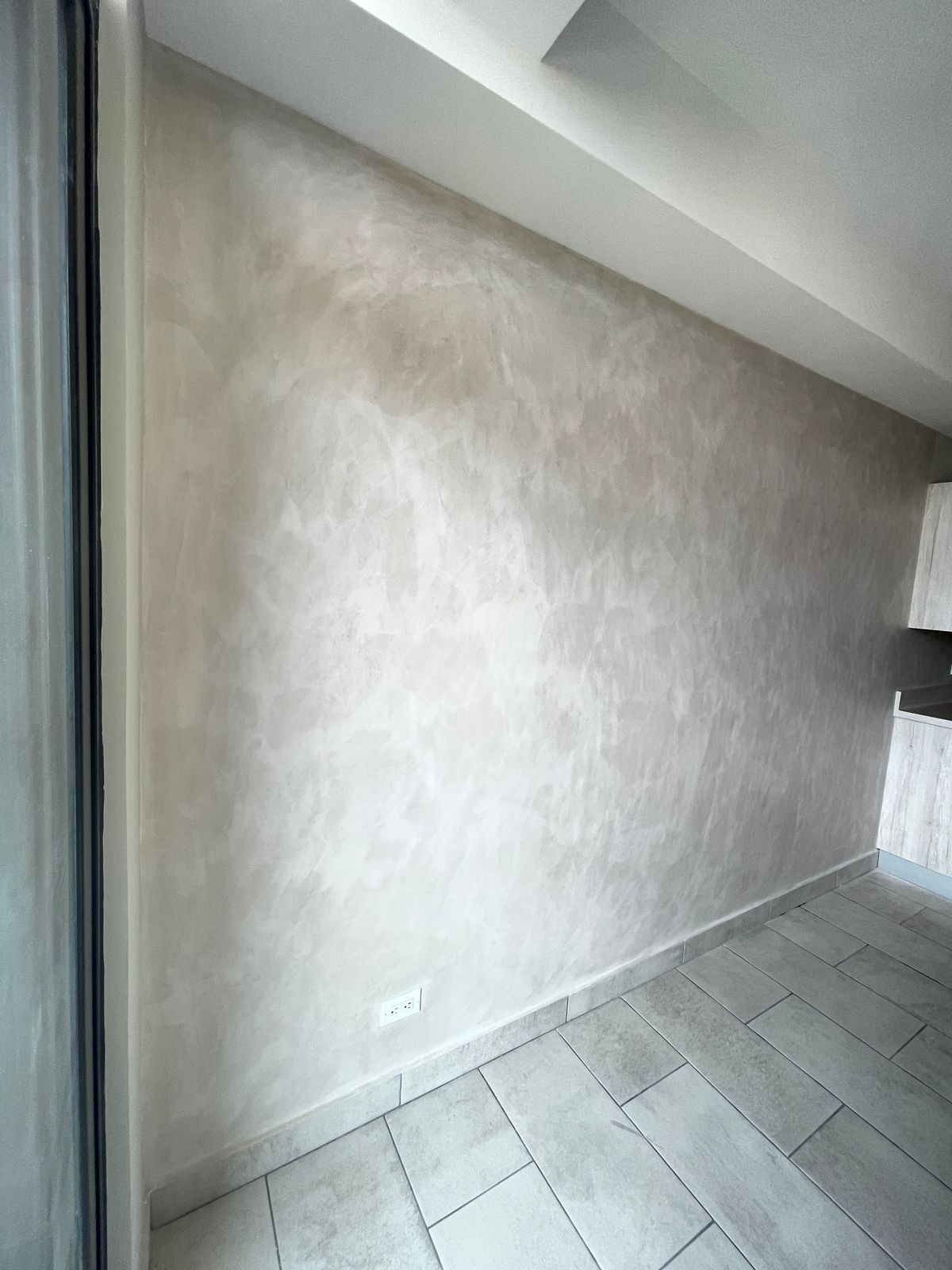 En este proyecto de renovación con microcemento se logró darle un toque moderno y elegante a las paredes de este espacio interior. La textura y acabado impecable del microcemento crearon un ambiente único y sofisticado