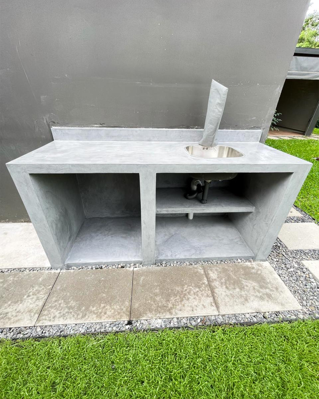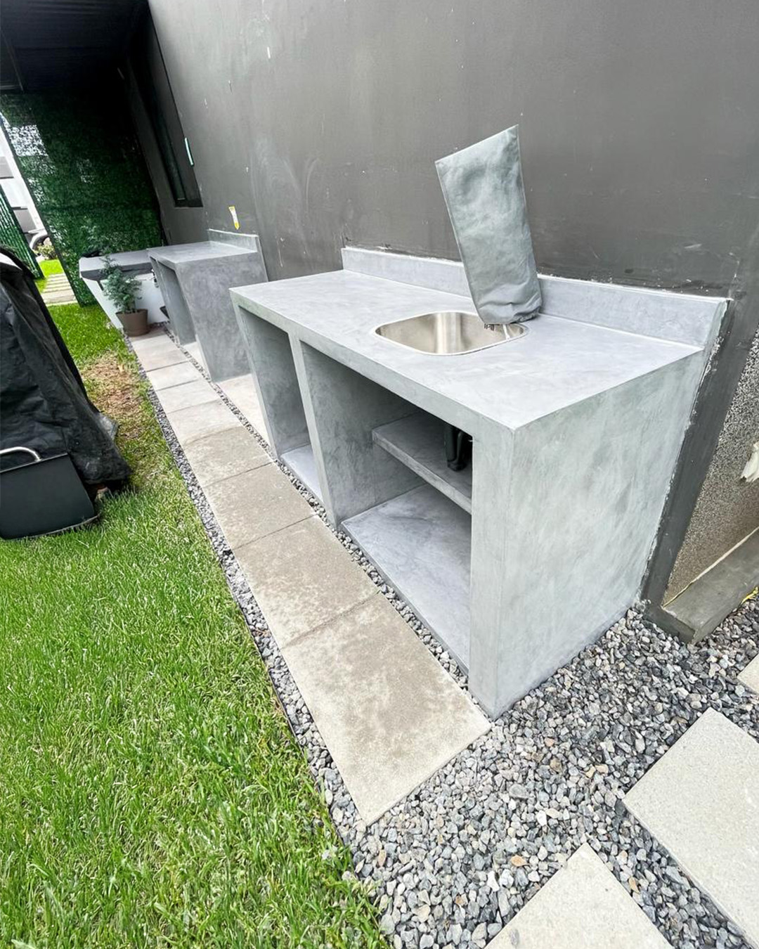 Este proyecto de microcemento en una barbacoa le brindo elegancia que se adecua al entorno aportando un look moderno y limpio para exteriores
